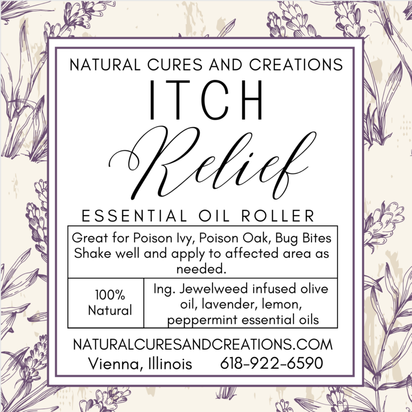Wildcrafted Jewelweed Infused Olive Oil, Tea Tree Essential Oil, Lavender Essential Oil, Peppermint Essential Oil, Lemon Essential Oil
